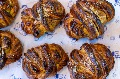 An enriched brioche dough with Estate Dairy butter, zesty cardamom and golden caster sugar filling.